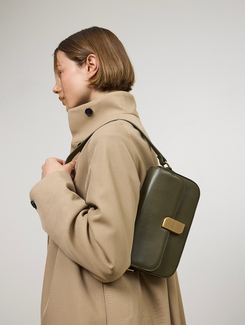 Alice Small is a compact and functional baguette-shaped bag. With its rectangular shape and clean design, it can be carried on the shoulder or as a crossbody bag thanks to an adjustable leather strap fastened with press studs. Its signature Nat & Nin clasp adds a contemporary and distinguished touch.