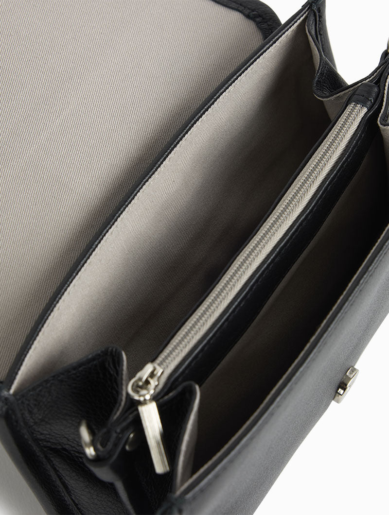 - Genuine leather shoulder strap, removable and adjustable up to 112 cm