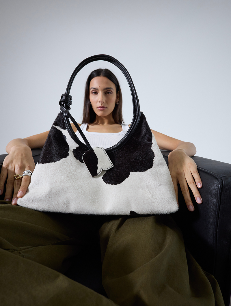 Unique and bold, the Hobo Milo bag features a cow print, the season's must-have fashion trend. Its comfortable shoulder strap and magnetic closure combine style and practicality, while its slip pocket and interior zip pocket offer optimal organization.