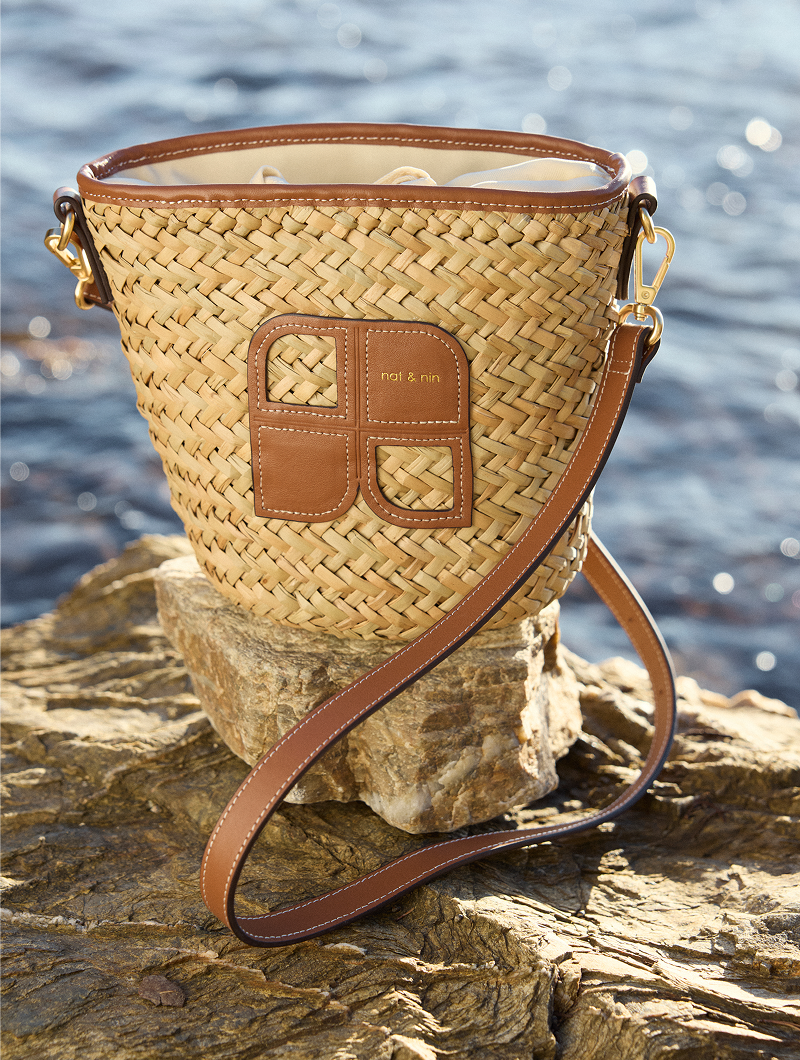 Sac seau intemporel alliant paille naturelle et cuir véritable de vachette. Ses empiècements en cuir structurent la silhouette tandis que la fermeture froncée en coton recyclé ajoute une touche artisanale. Bandoulière amovible et réglable pour adapter le port à vos envies. À l'intérieur, une poche zippée pratique pour sécuriser vos essentiels.