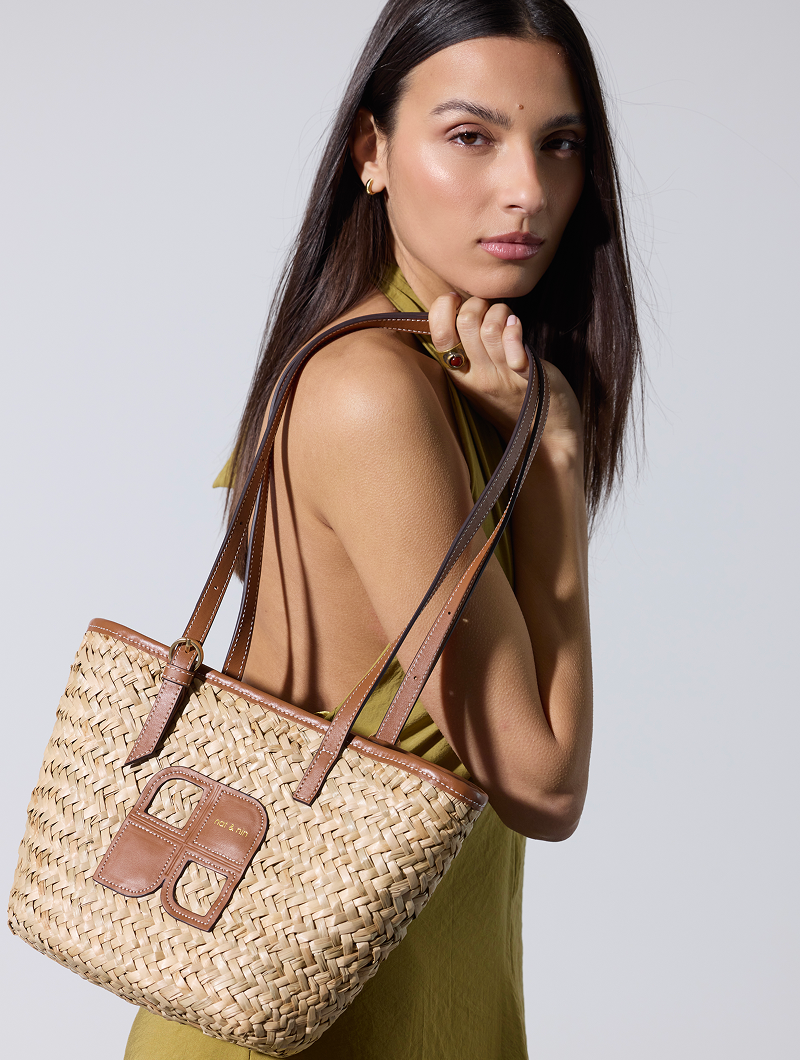 The Rafael mini basket elegantly blends natural straw and leather. Its double adjustable handles allow for comfortable carrying, while its gathered closure in recycled cotton easily protects your essentials. Inside, a zippered pocket offers convenient storage in this compact and refined design.