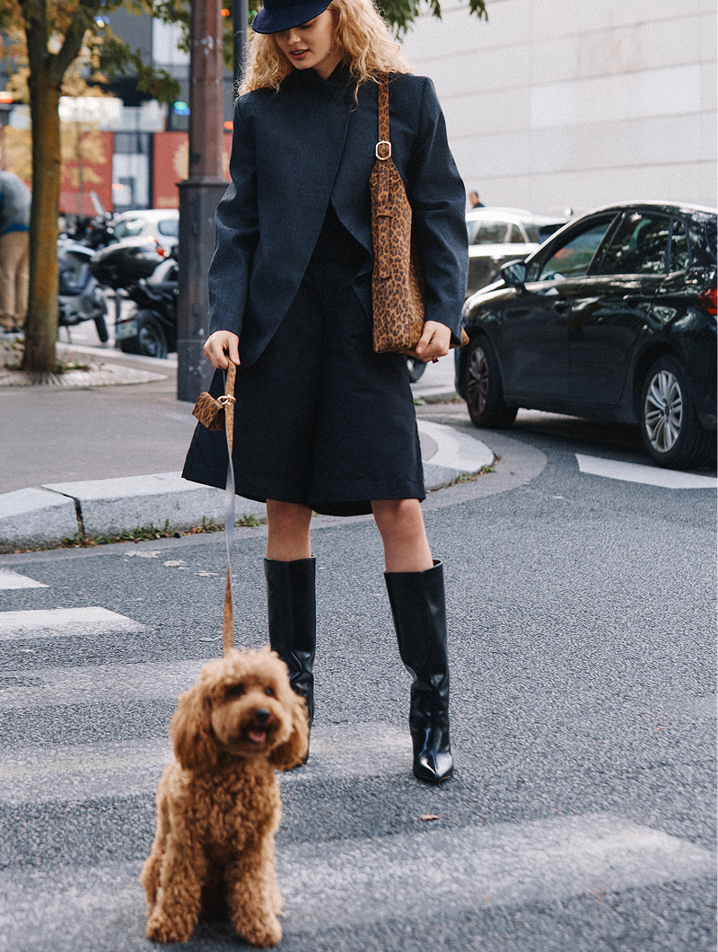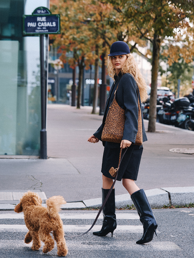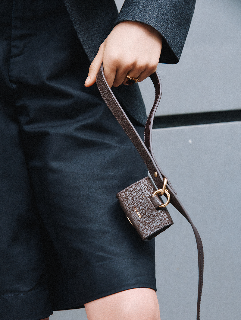 Los cueros utilizados provienen de la colección Primavera-Verano 26, ofreciendo así la posibilidad de una sutil coordinación entre usted y su fiel compañero para un efecto matchy matchy.