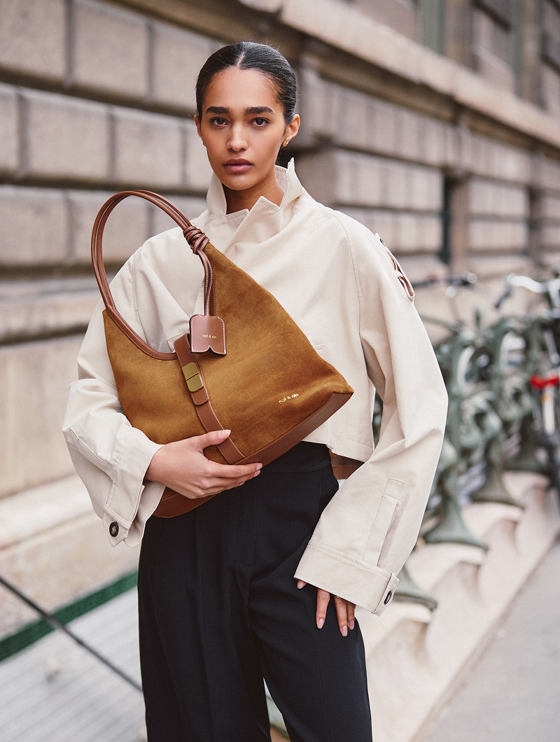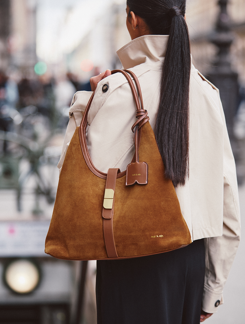 Descubra el bolso hobo Romeo de ante, que combina suavidad y elegancia. Su cierre adornado con un refinado logo aporta un toque sofisticado, perfecto para realzar todos sus atuendos. Práctico y chic, este bolso es el accesorio ideal para acompañarle en su día a día con estilo.