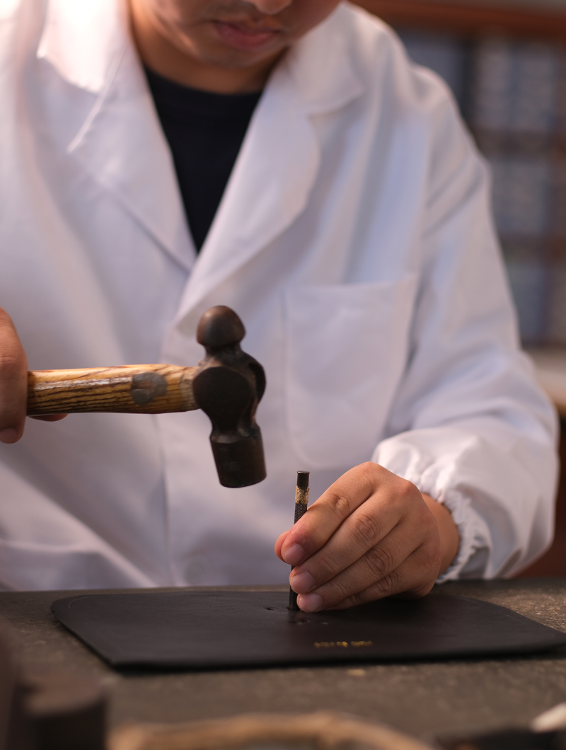 Certains de nos cuirs proviennent de Vénétie, en Italie, où nous collaborons avec nos tanneries partenaires pour créer des coloris originaux et uniques chaque saison. Les marques naturelles et les subtiles variations de couleur et de grain rendent chaque pièce unique et authentique.