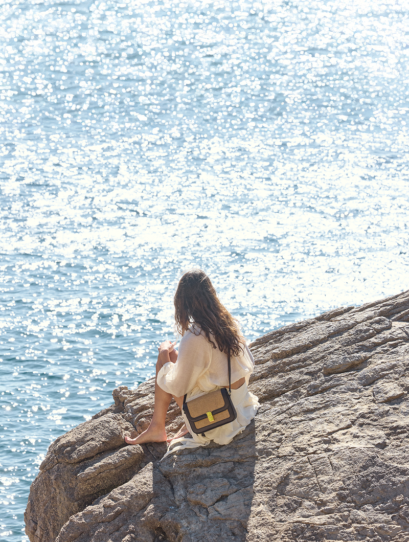 Le sac bandoulière Alice se réinvente pour l’été avec une version paille lumineuse et élégante. Son fermoir tourniquet orné du logo signature nat&nin apporte une touche raffinée, tandis que son format compact accompagne toutes vos journées en douceur.