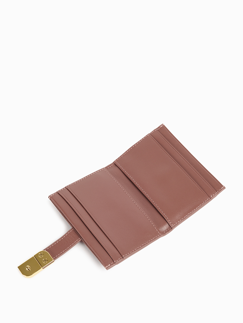 Le porte-cartes Aude allie élégance et fonctionnalité. Fermeture pression ornée du logo signature, deux volets pratiques pour ranger cartes et monnaie, et design compact pour vous accompagner au quotidien.