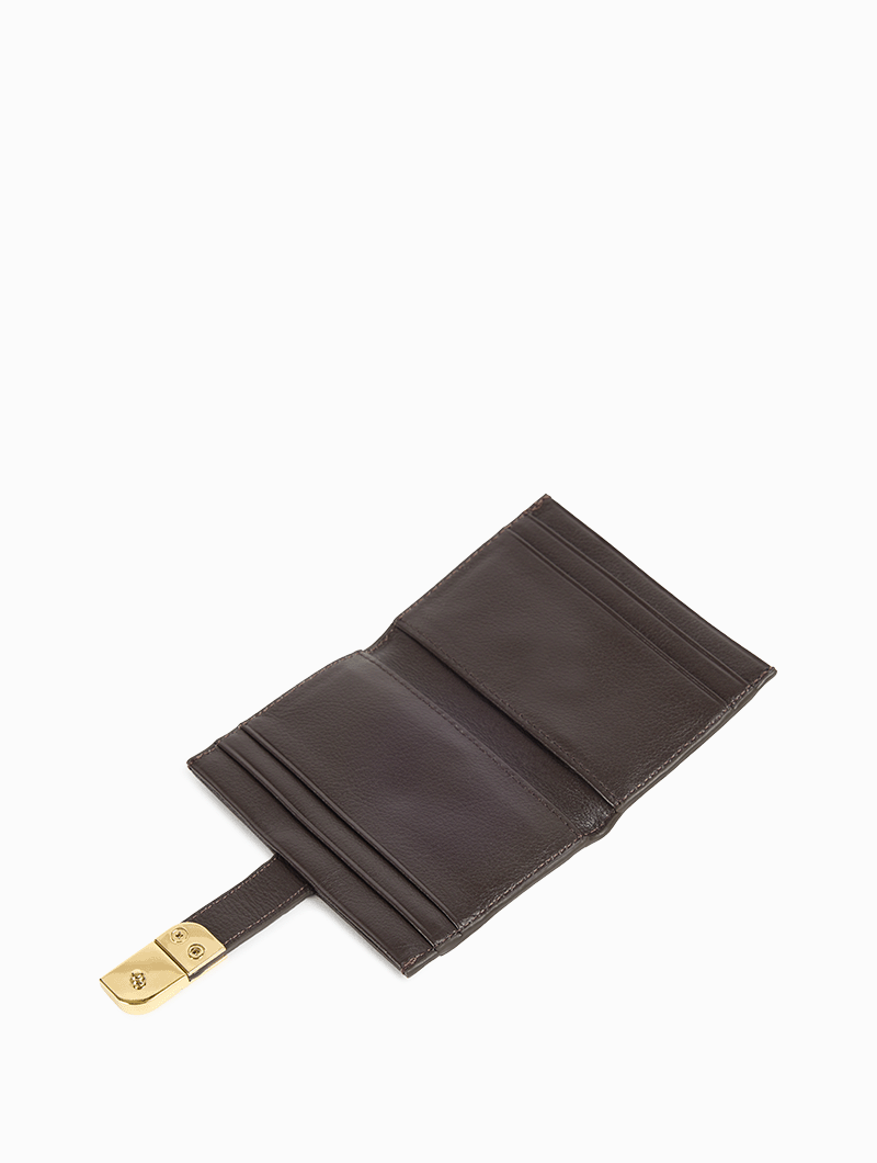 Le porte-cartes Aude allie élégance et fonctionnalité. Fermeture pression ornée du logo signature, deux volets pratiques pour ranger cartes et monnaie, et design compact pour vous accompagner au quotidien.