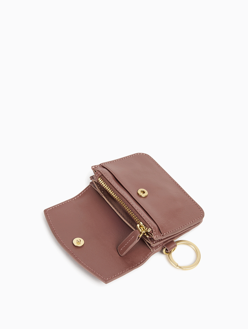 Le porte-monnaie Lee allie élégance et praticité. Sa fermeture pression et son anneau porte-clés assurent sécurité et commodité, tandis que ses poches plaquées à l’avant et à l’arrière et son compartiment zippé central offrent un rangement optimal.