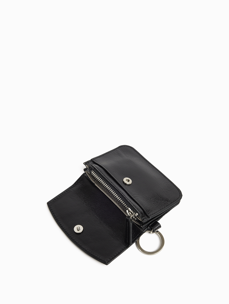 Le porte-monnaie Lee allie élégance et praticité. Sa fermeture pression et son anneau porte-clés assurent sécurité et commodité, tandis que ses poches plaquées à l’avant et à l’arrière et son compartiment zippé central offrent un rangement optimal.