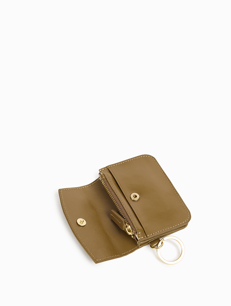 Le porte-monnaie Lee allie élégance et praticité. Sa fermeture pression et son anneau porte-clés assurent sécurité et commodité, tandis que ses poches plaquées à l’avant et à l’arrière et son compartiment zippé central offrent un rangement optimal.
