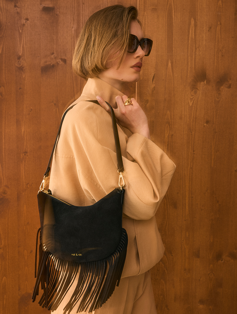 Le modèle Lune repensé en suède avec des franges : élégant et tendance avec une coupe minimaliste !