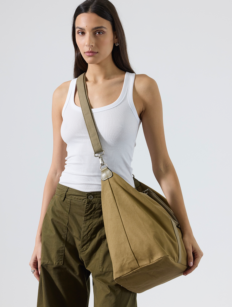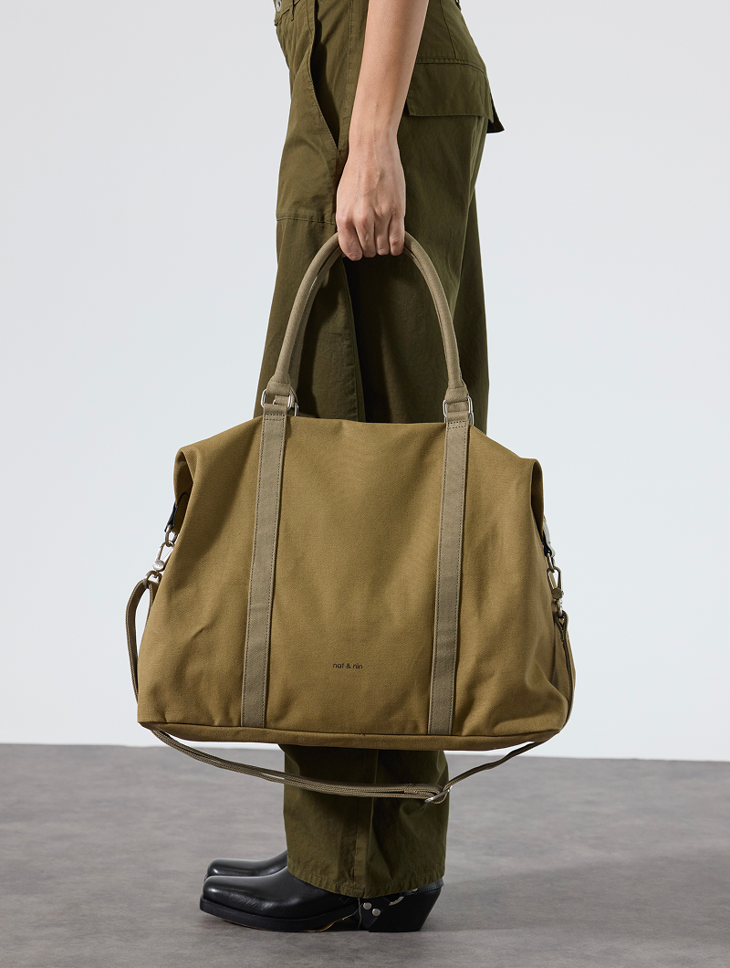 Confectionné en toile de coton avec empiècements en cuir, Maxi Thylane mise sur un look mode et responsable.