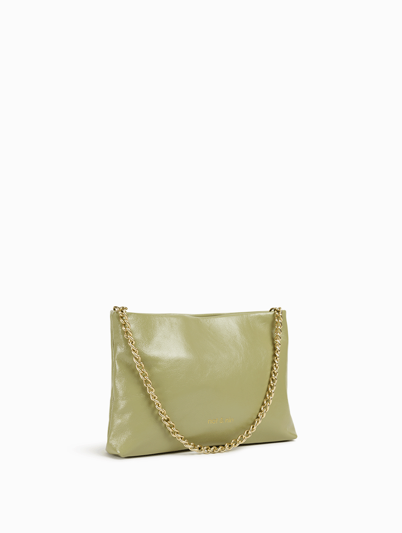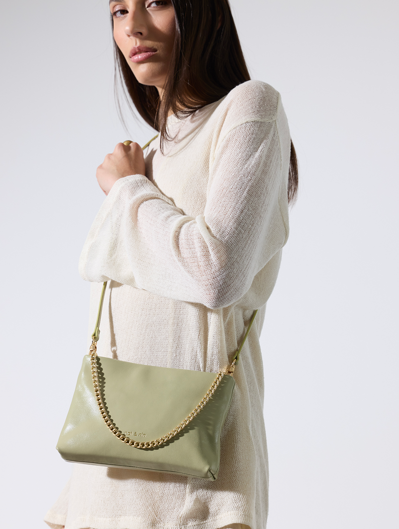 Couleur: Pistache- Cuir glacé craquelé
