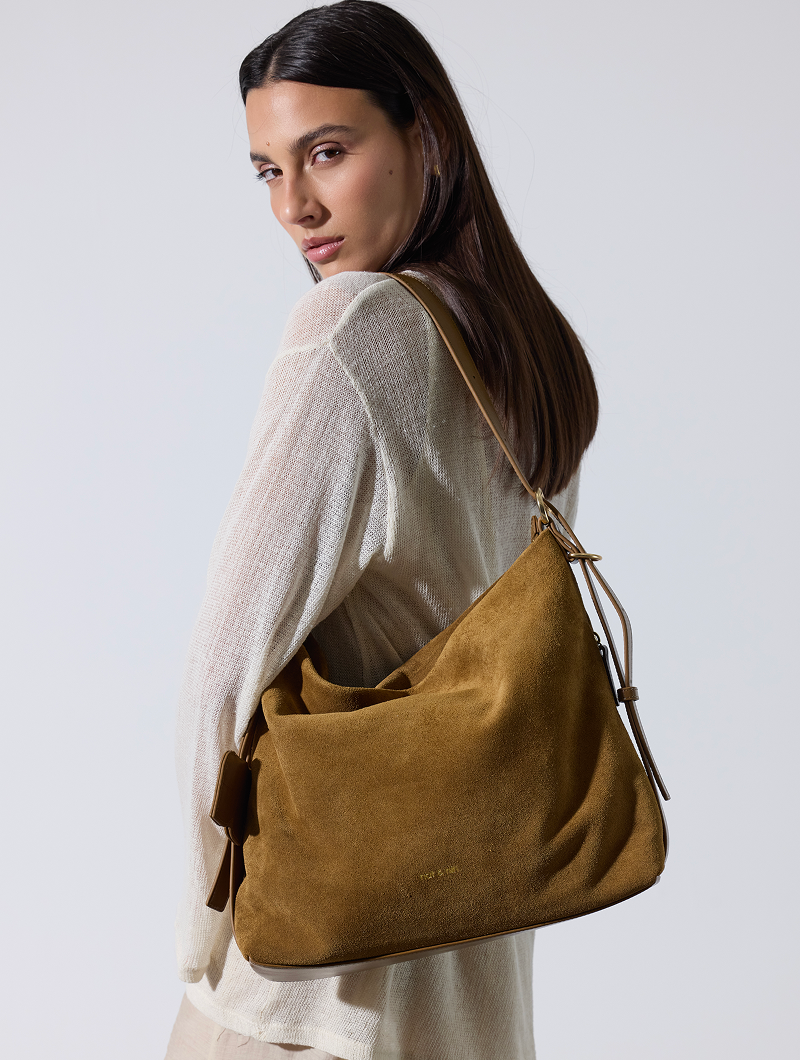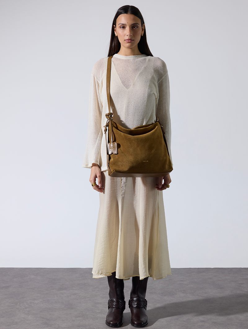 Découvrez Moreen, le sac hobo en cuir de velours alliant élégance et praticité pour un usage quotidien. Parfait pour sublimer votre quotidien avec une note de sophistication, sa forme spacieuse vous permet d’emporter l’essentiel avec style.