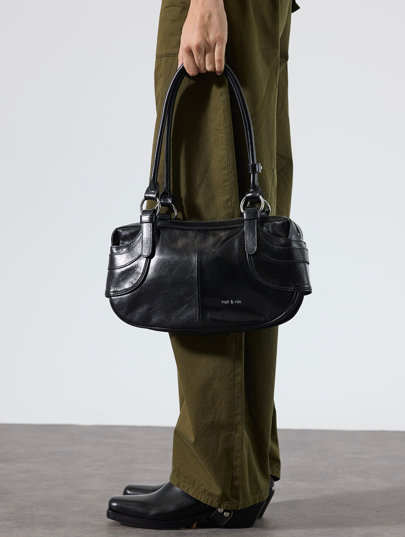 Le sac Hobo Nelly allie élégance et modernité. Ses deux anses permettent un porté épaule confortable, tandis que les empiècements soignés sur les côtés ajoutent une touche de style raffinée. Fermeture zippée, poche intérieure zippée, deux poches plaquées et porte-cartes offrent un rangement optimal pour l’essentiel.