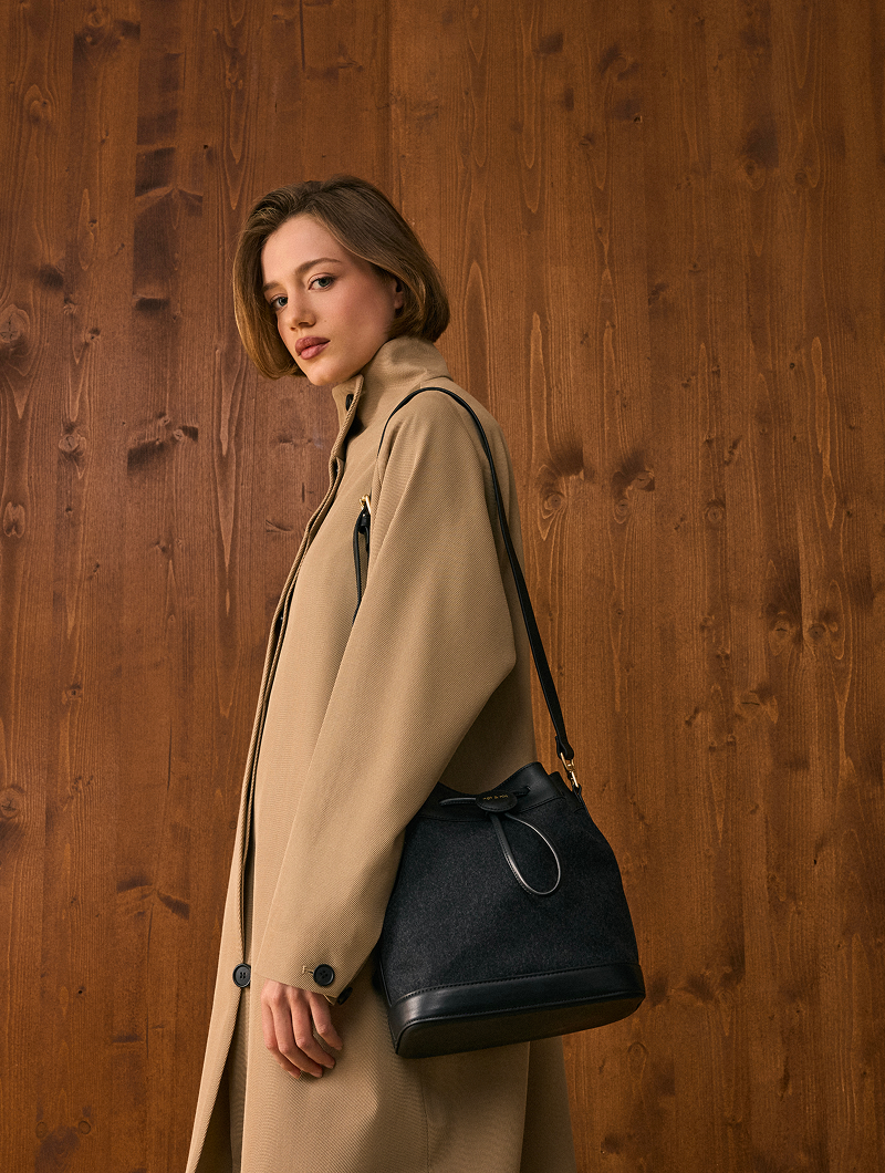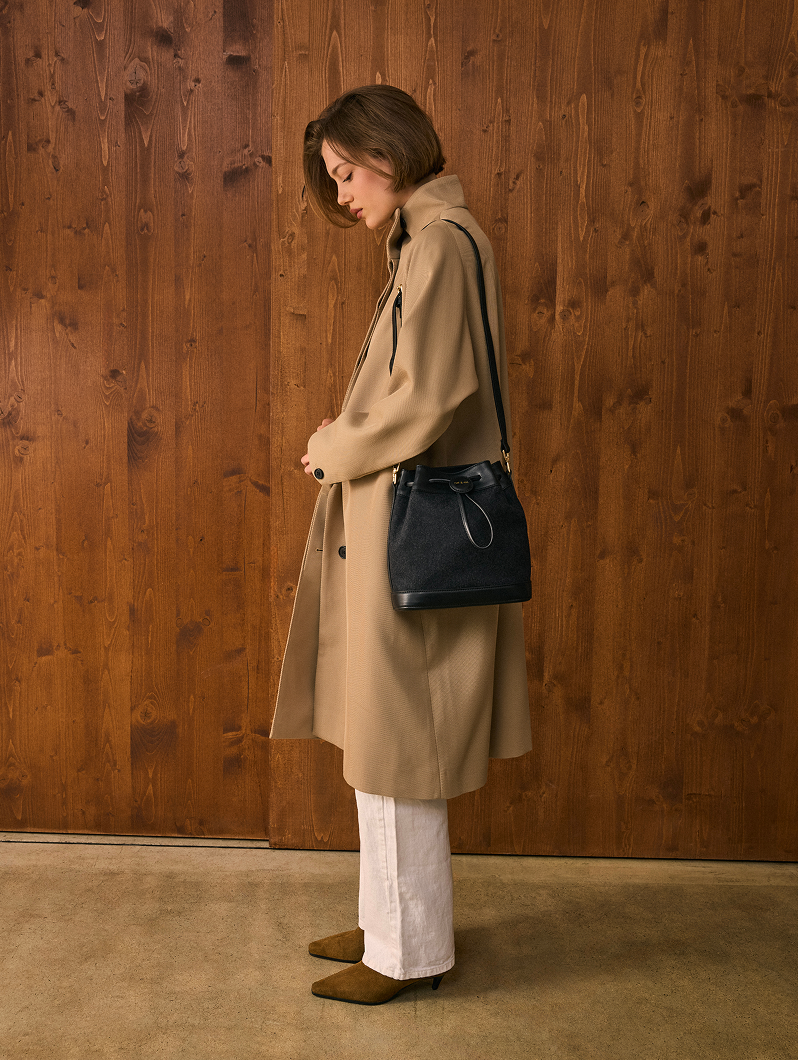 Découvrez la version automne-hiver en laine de Norah : un sac seau alliant texture chaleureuse et design audacieux. Son style épuré et déstructuré vous offre une praticité optimale, tandis que sa bandoulière ajustable s’adapte à toutes vos envies pour un look unique et fonctionnel.