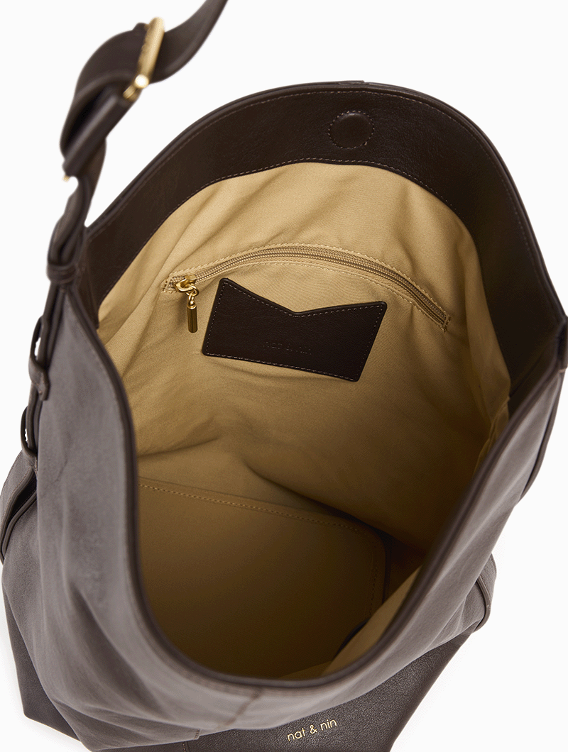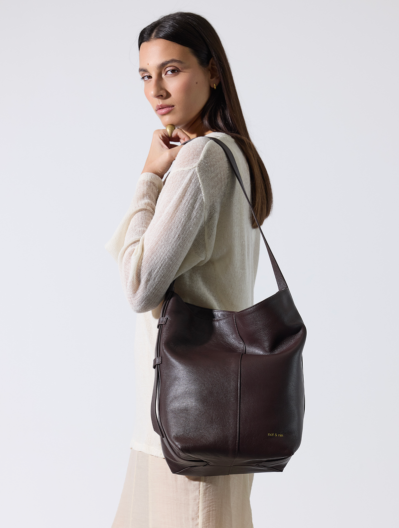 Confectionné en cuir de vachette véritable et doublé de coton recyclé, Nour combine allure moderne et qualité durable.