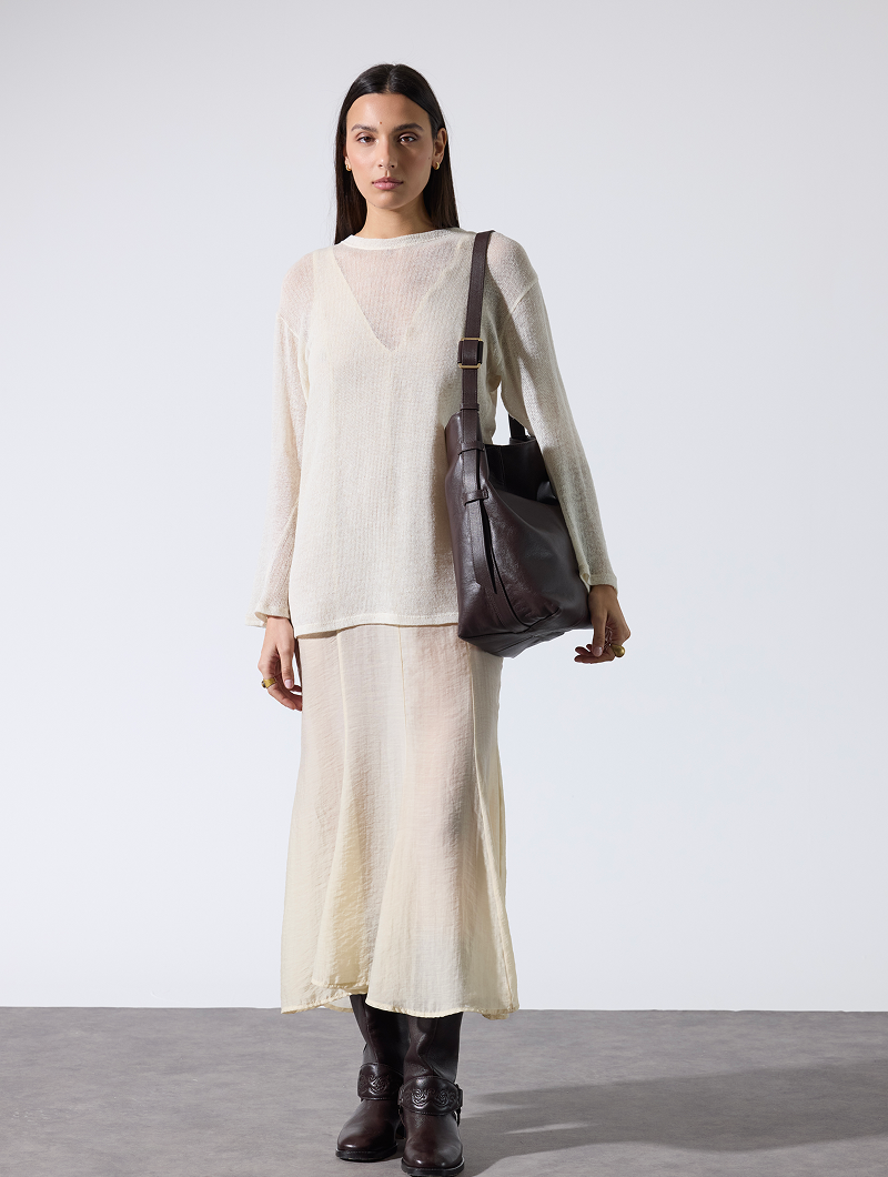 Le sac seau Nour dévoile une silhouette souple et tendance dans un format XL pratique. Porté bandoulière avec anse réglable, il se ferme d’un geste grâce à son système aimanté. À l’intérieur, sa poche zippée, sa poche plaquée, son porte-cartes et son fond amovible offrent un rangement bien pensé pour le quotidien.