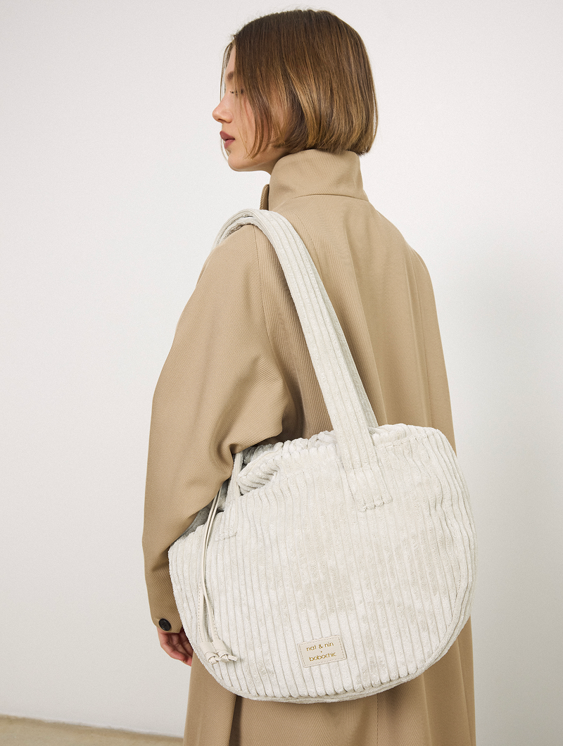 Pratique et moderne, découvrez Romane, un cabas en velours côtelé qui se veut mixte. Avec sa fermeture à liens ajustables, ce tote est idéal pour contenir toutes vos affaires du quotidien.