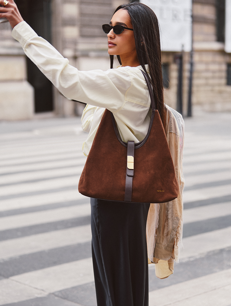Découvrez le sac hobo Roméo en suède, alliant douceur et élégance. Son fermoir orné d’un logo raffiné apporte une touche sophistiquée, parfaite pour sublimer toutes vos tenues. Pratique et chic, ce sac est l’accessoire idéal pour vous accompagner au quotidien avec style.
