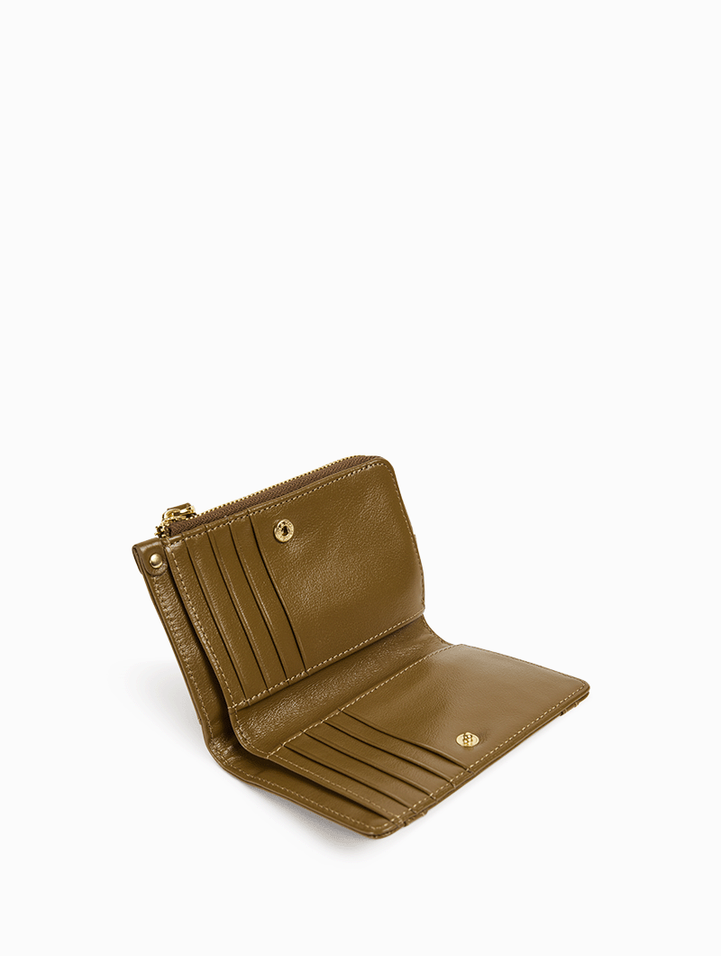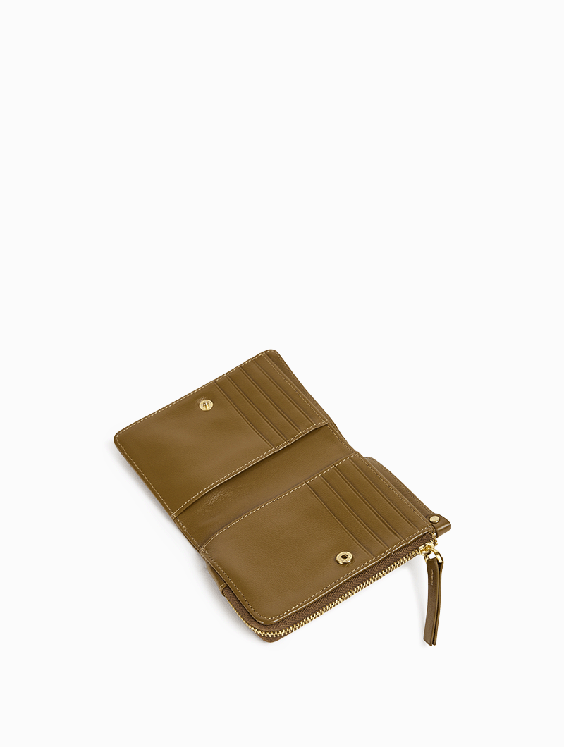- Compartiment à l’avant, fermeture pression, avec compartiment billets, poches plaquées et 8 rangements cartes